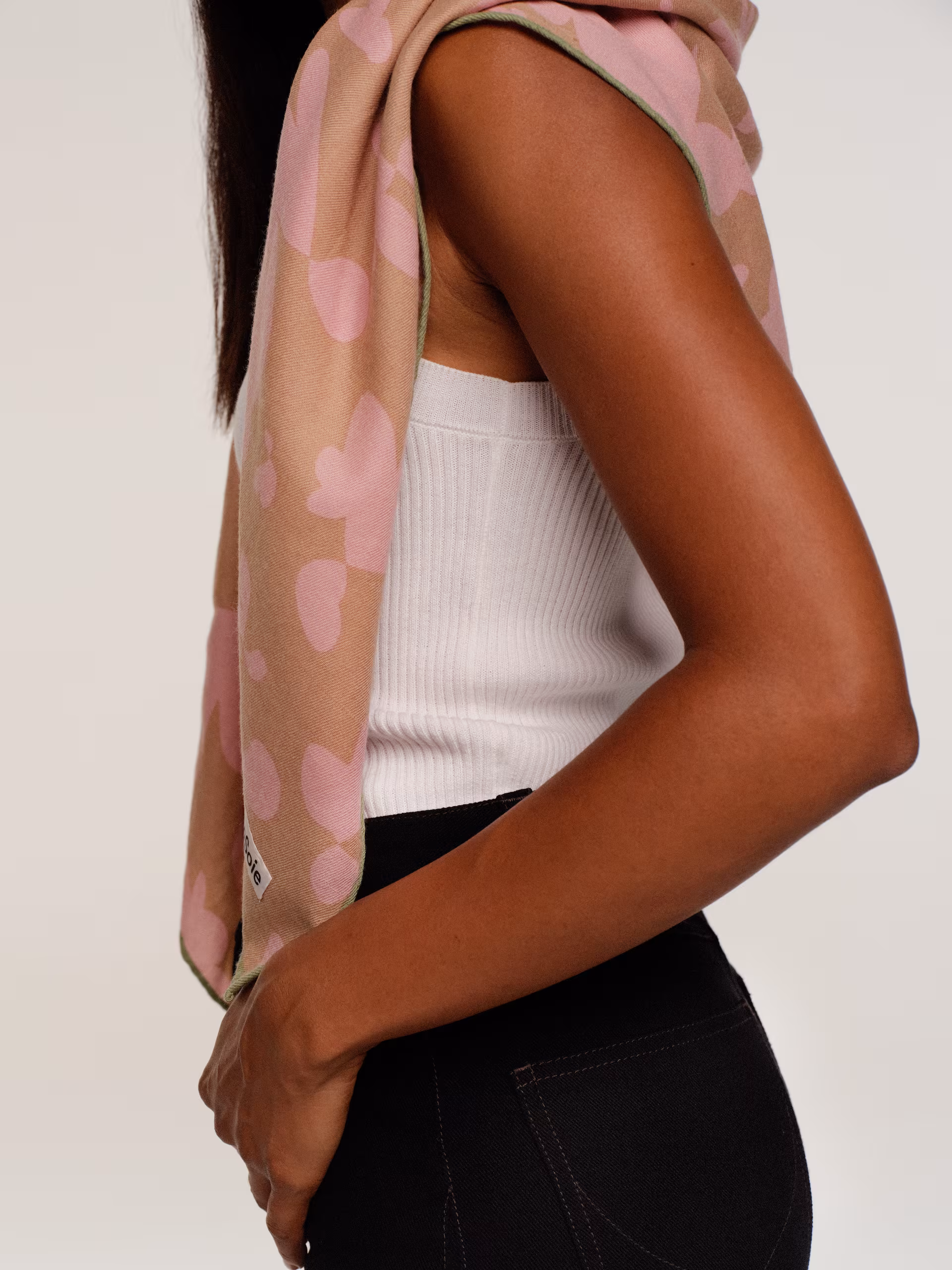 Dieser Foulard ist ein stilvolles Accessoire für jedes Outfit und besticht durch seinen farbenfrohen, handgefertigten Siebdruck. Aus feiner Wolle gefertigt, bietet er sowohl kühlende als auch wärmende Eigenschaften – perfekt für jede Jahreszeit.