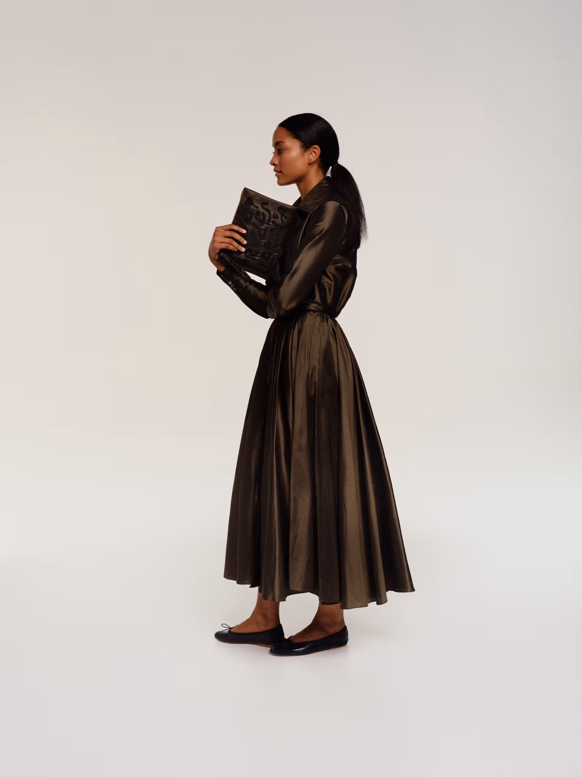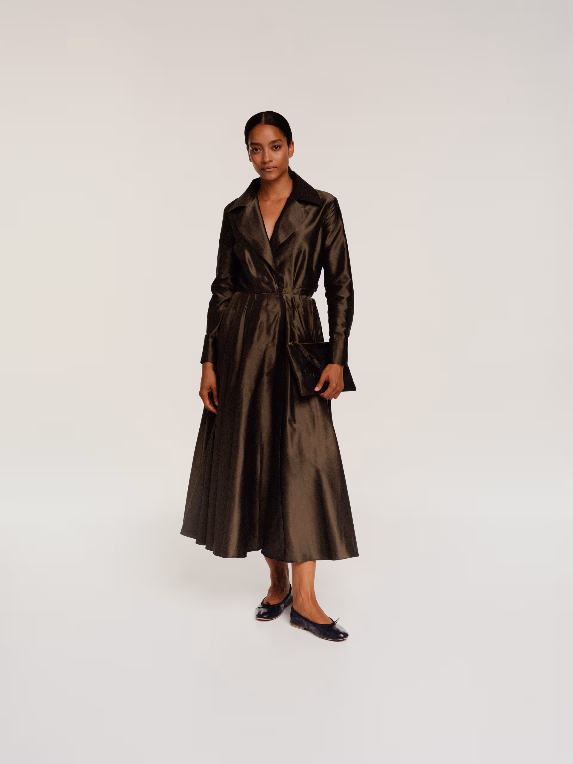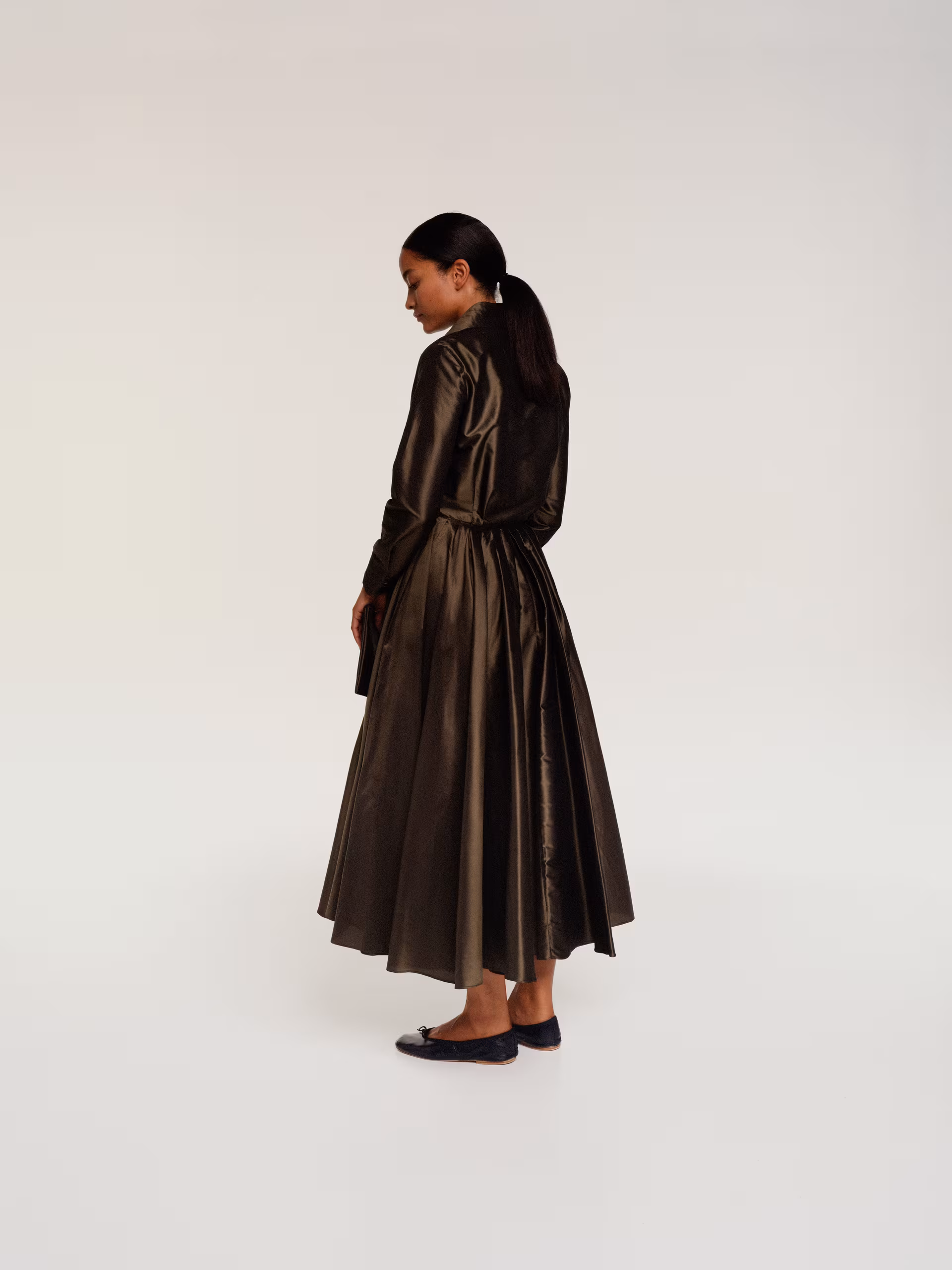 Das Delphine Kleid aus glänzender Doupionseide ist die perfekte Wahl für alle festliche Gelegenheiten.