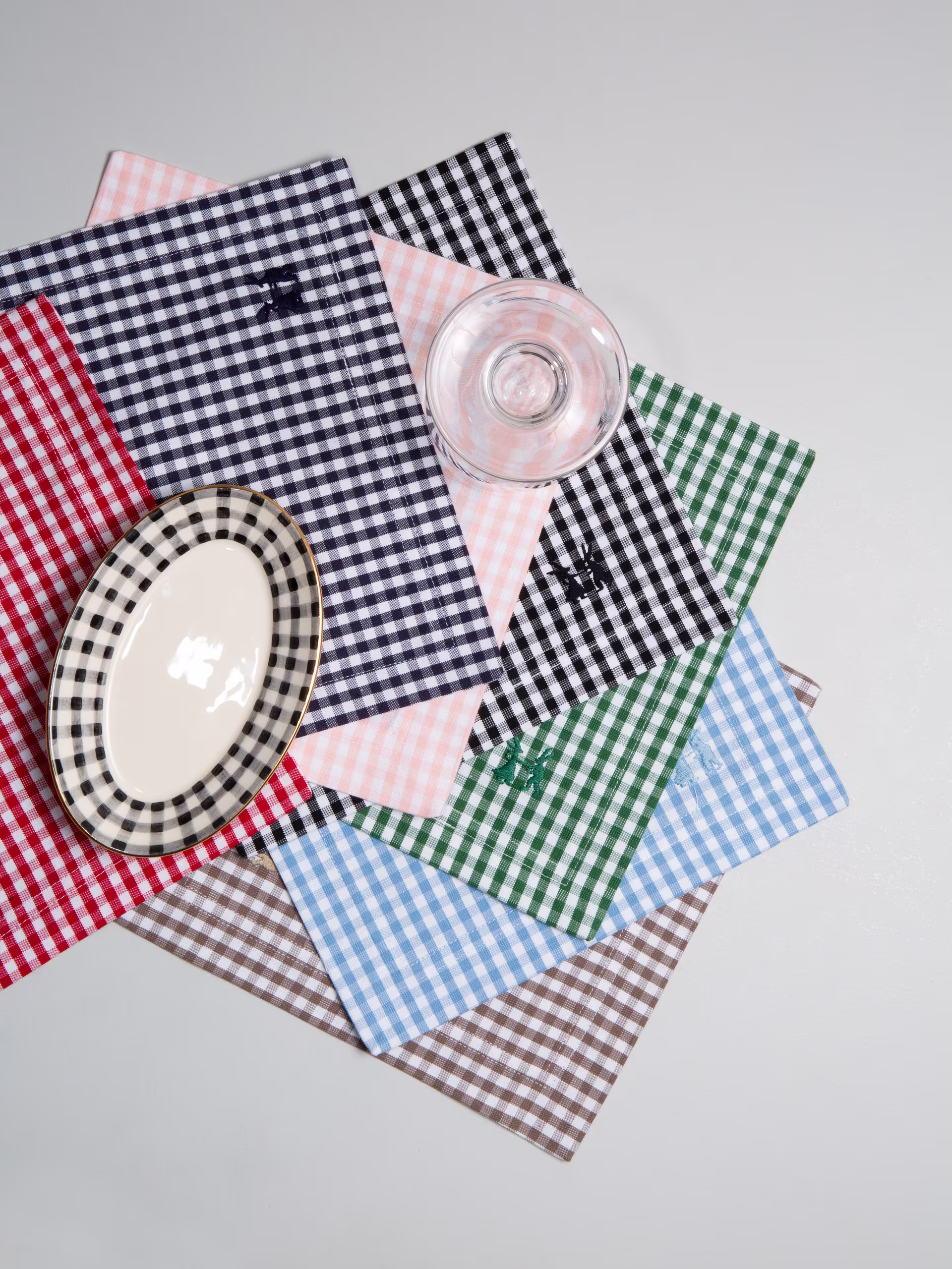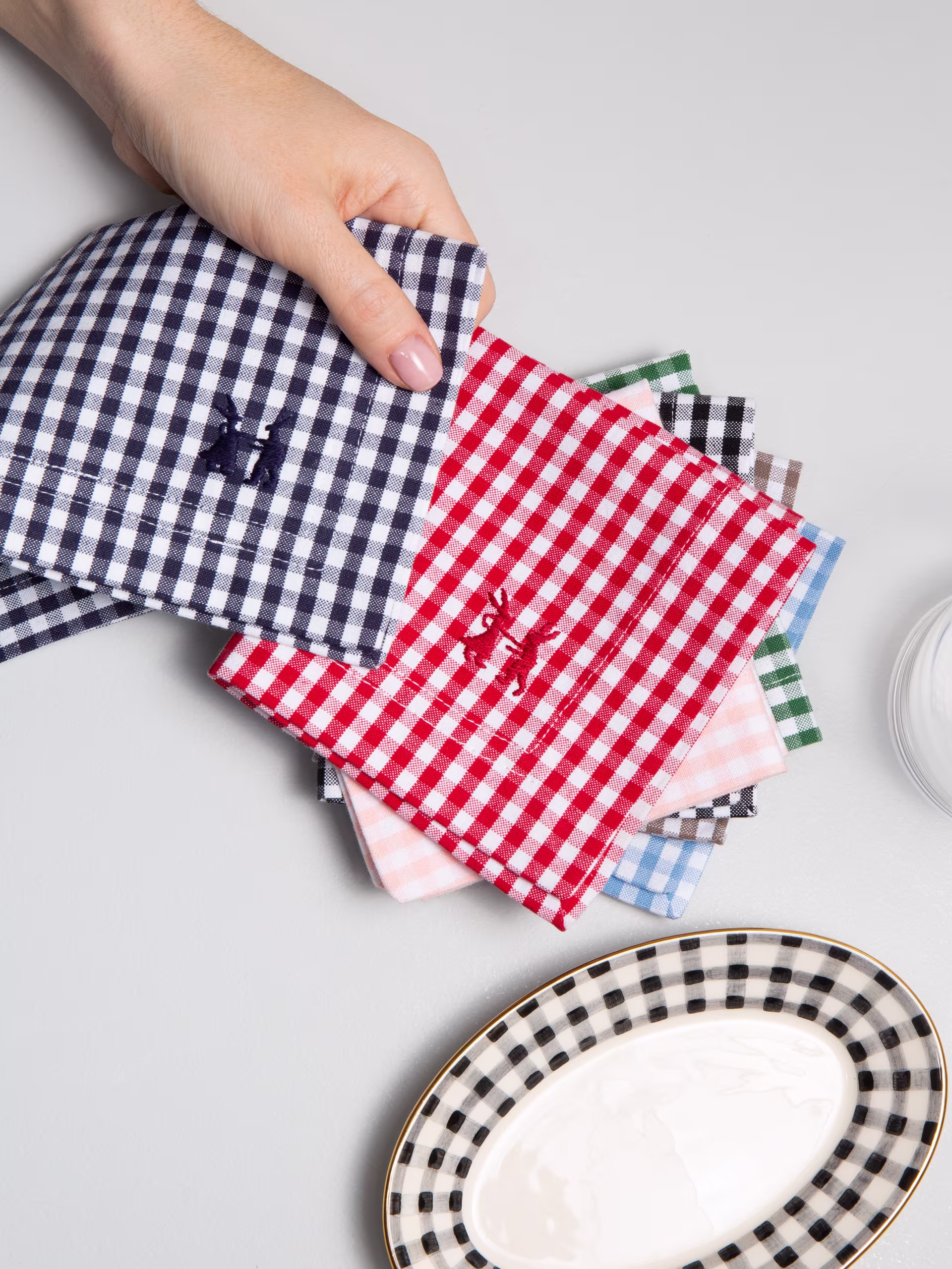The colourful cocktail nakins are a new addition to our range of table linen. Each napkin is made of soft cotton fabric, double-layered around the border and completed with a hand-embroidered dancing rabbits logo. Whether in combination with linen, striped or Vichy products, these small napkins will be a fun accessory for your next aperitif or cocktail party.