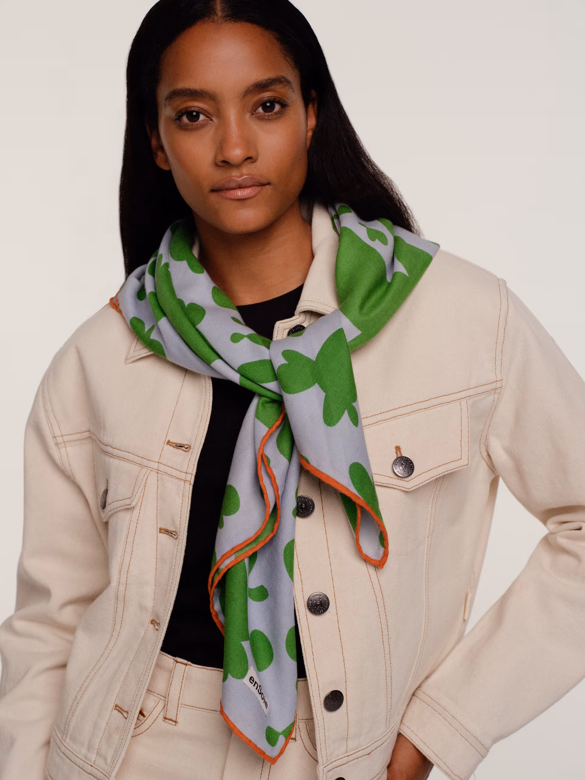 This foulard is a stylish accessory for any outfit, featuring a colourful hand-screen print. Made from soft wool, the foulard offers both cooling and warming qualities, perfect for wearing all year round. The ideal accessory to add effortlessness to an elegant outfit or a little colour to a modern, casual outfit.