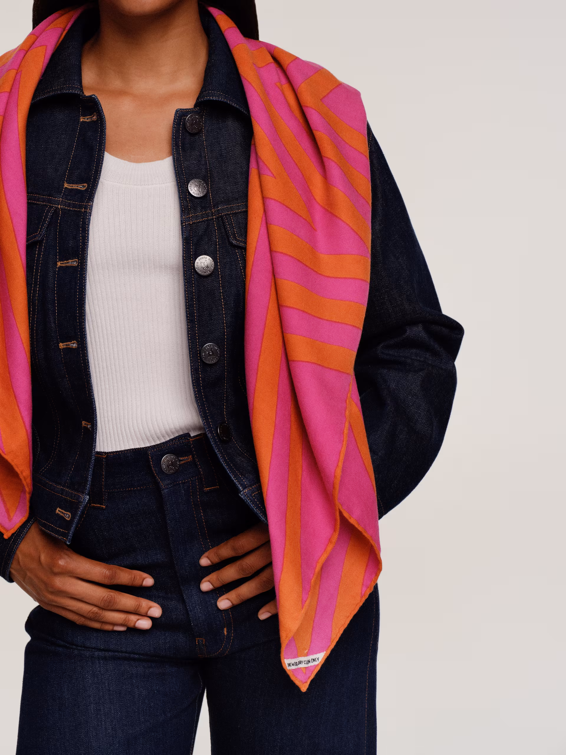 A well-known enSoie classic is back! The classic wool foulard with a unique and playful twist featuring the Star pattern is beautiful, timeless and easy to incorporate into any wardrobe. The playful and bold design in bold Pink and Orange colours adds a classy and colourful twist to your favourite outfit.