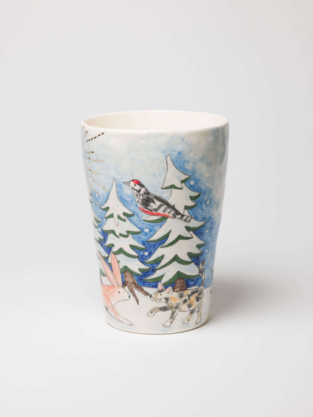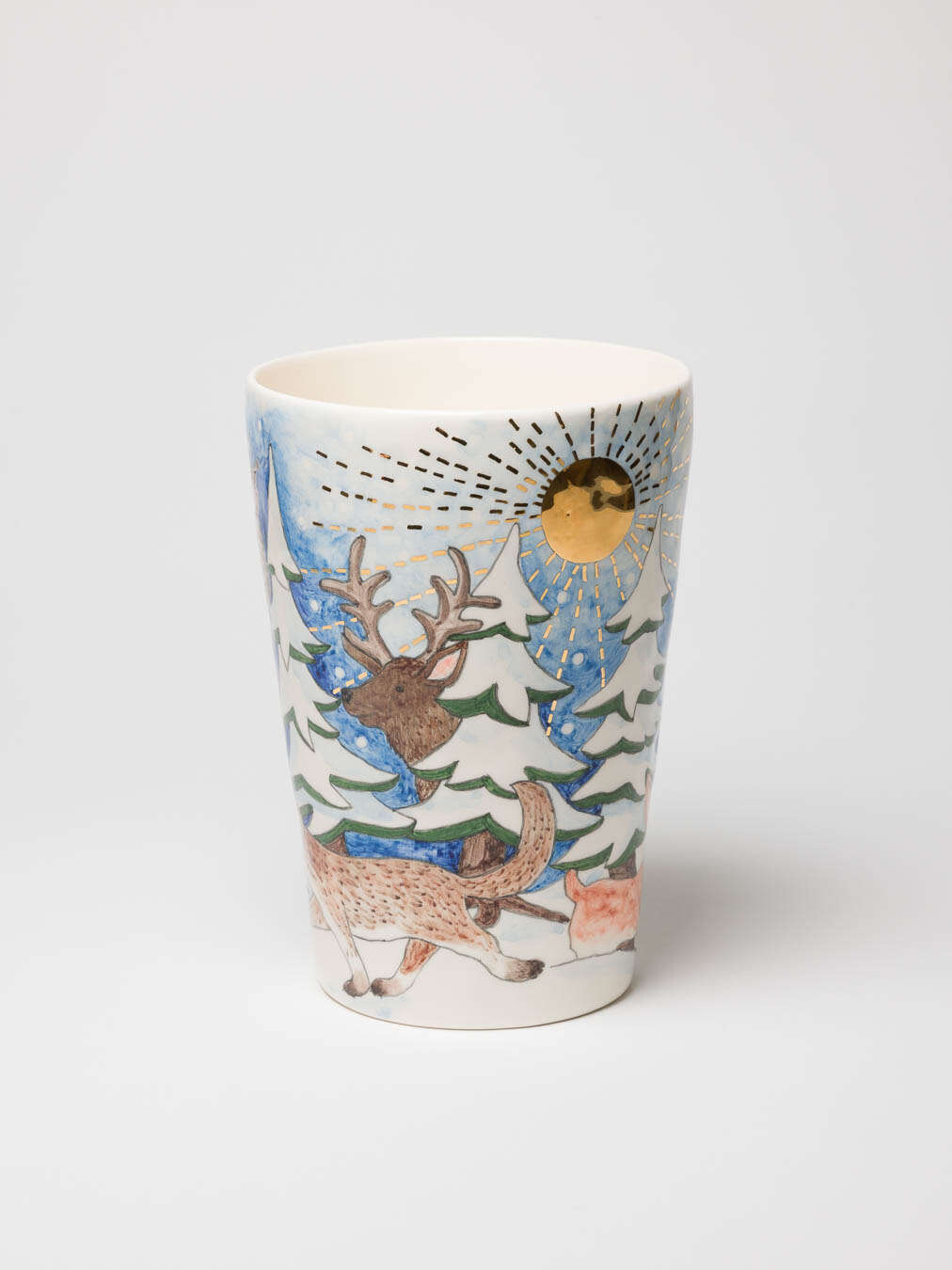 This beautiful vase captures the quiet magic of a snowy winter forest and tells a story that touches the heart.