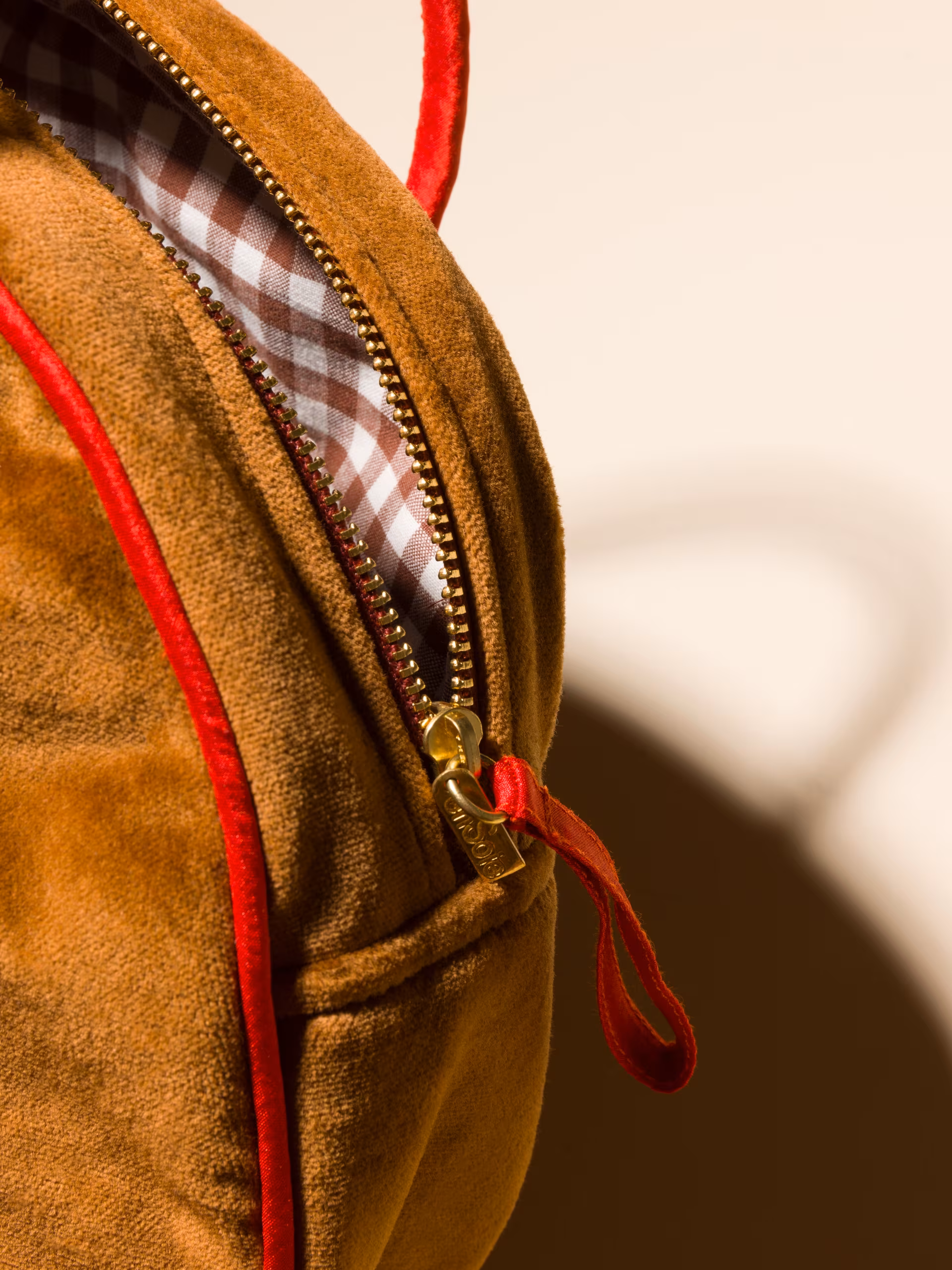 This adorable round velvet bag in three wonderfully warm colours is a sweet addition to your autumn and winter outfits. Made from soft velvet and with straps in matt shiny doupion silk, this little bag is perfect for any occasion, whether you're going for coffee with friends or going out on the town.